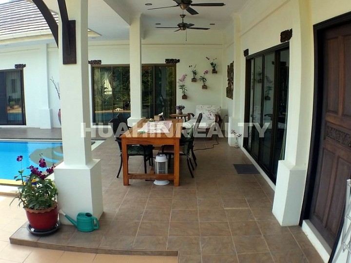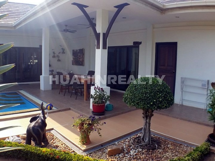 Просторный 3 спальный дом с собственным бассейном в охраняемом поселке Хейтс 2 в районе сои 156 на югу Хуа Хина всего в паре километров от популярного пляжа Сай Ной.