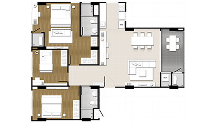 3 спальные апартаменты в новом строящемся жилом комплексе Baan Thew Lom в 20 км к северу от Хуа Хина. В настоящий момент в продаже осталось не более 15 трехспальных квартир в этом комплексе по цене от 5.4 до 7.3 млн бат в зависимости от этажности и вида.
