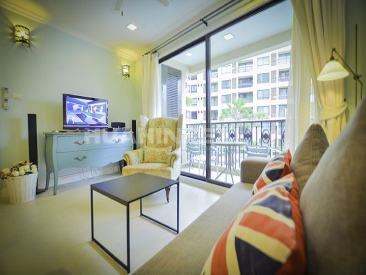 Дизайнерские апартаменты с 1 спальной комнатой в аренду в комплексе Марракеш с видом на внутренний двор комплекса.