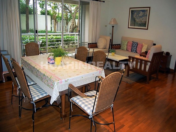 Просторная квартира с 3 спальными комнатами в аренду в комплексе Сан Саран на побережье центрального городского пляжа Хуа Хина. Большая ухоженная территория комплекса, детские горки и детская комната, спортивный зал и много другое.