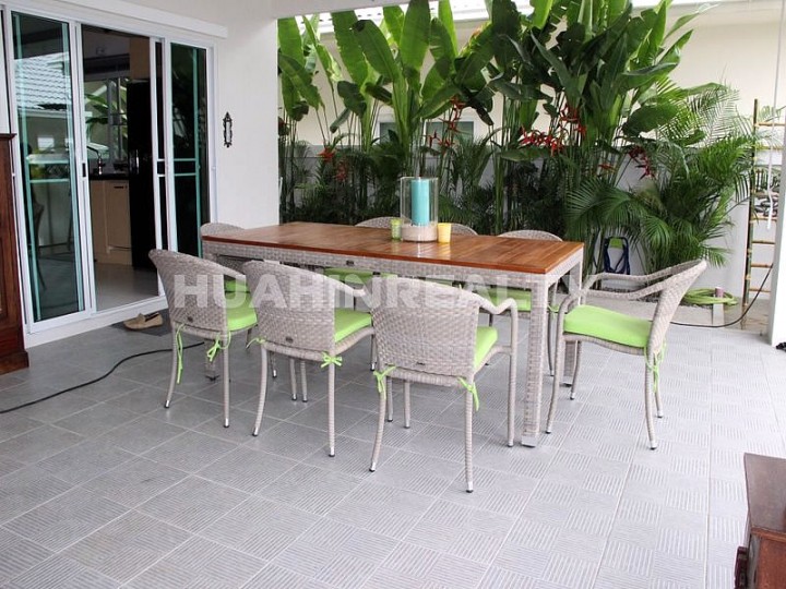 Уникальное предложение о покупке собственной тропической полностью меблированной виллы с бассейном в Хуа Хине. Всего 6.9 млн бат за идеальный семейный дом с 3 спальнями в идеальном состоянии на территории охраняемого популярного поселка.