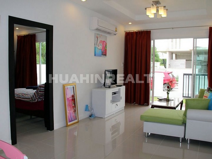 Новый полностью меблированный двуспальный дом в современном стиле на территории нового жилого поселка в аренду в Хуа Хине. Минимальный срок аренды — 3 месяца.
