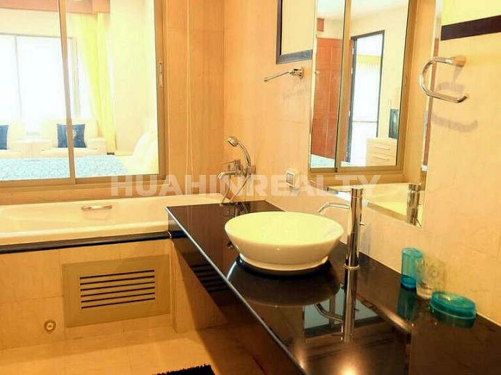 Большая светлая квартира с 3 спальными комнатами площадью более 100 м2 в комплексе Boathouse на севере Хуа Хина на первом этаже с собственным выходом к бассейну.