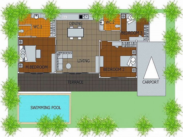 Вилла с современным дизайном с полезной площадью 159 м2, бассейном 3 на 7 метров, 3 спальных и 2 ванных комнаты, крытая терраса.