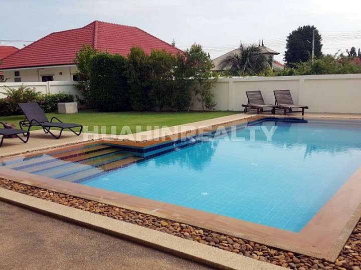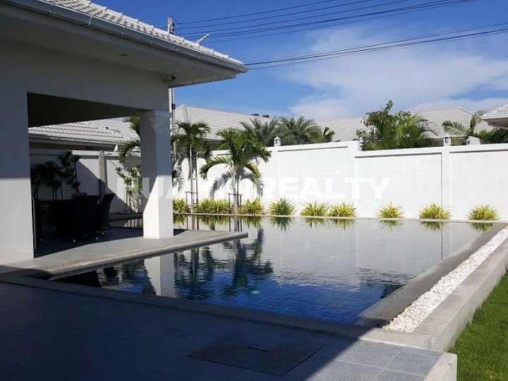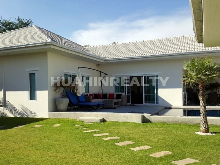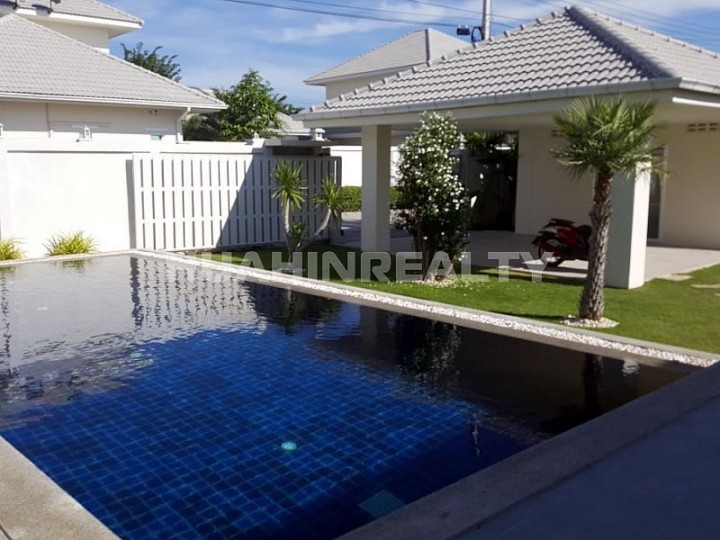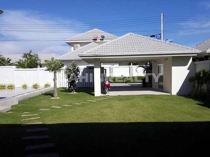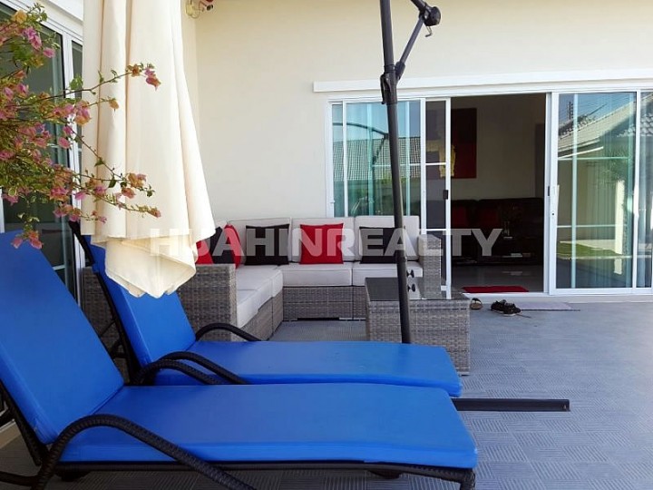 Новый полностью меблированный 4 спальный дом с бассейном открытой террасой в аренду в охраняемом жилом поселке The Lees недалеко от центра Хуа Хина.