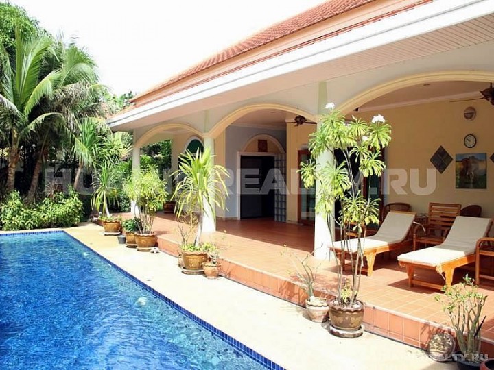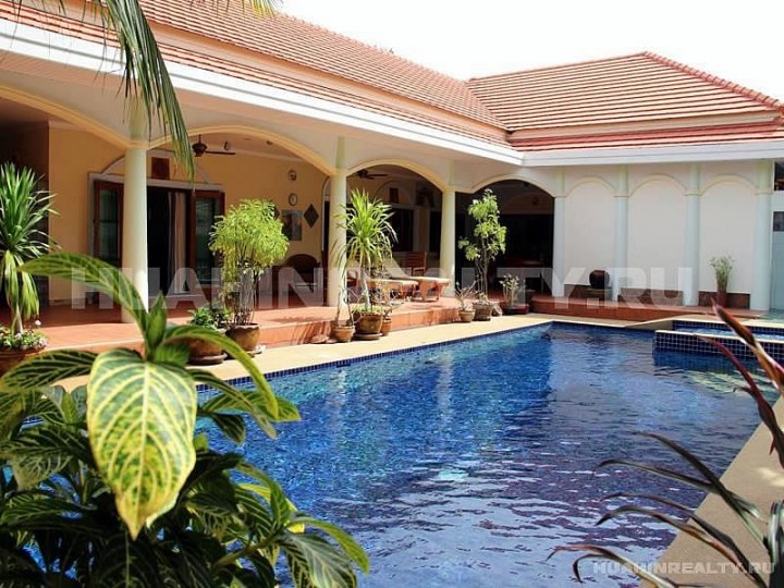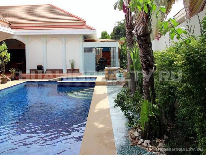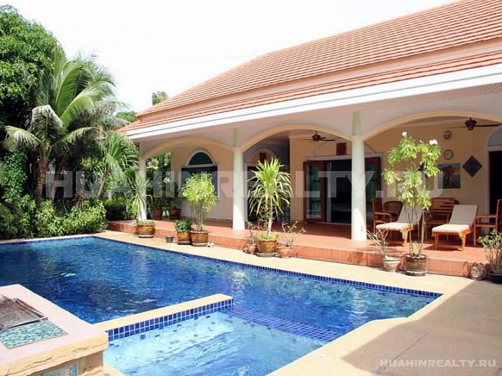 Вилла с бассейном с 3 спальными и 4 ванными комнатами в охраняемом поселке в популярном районе на юге Хуа Хина.