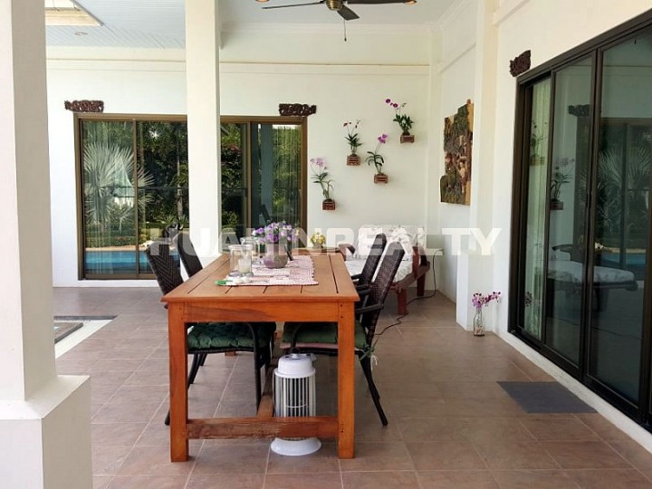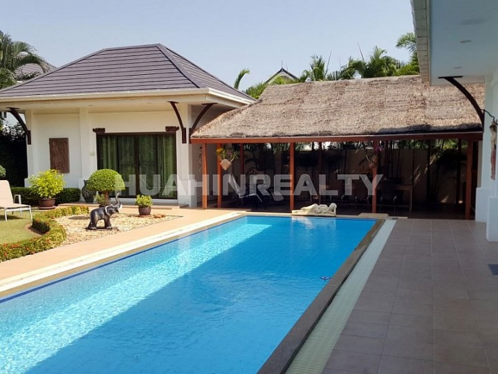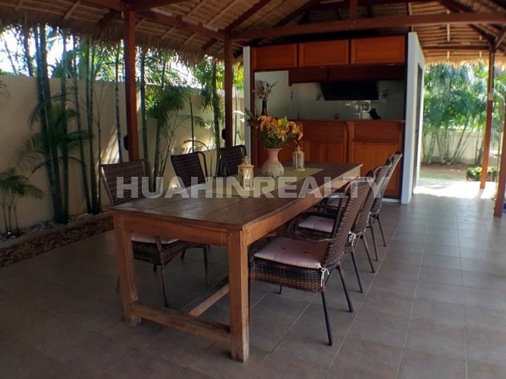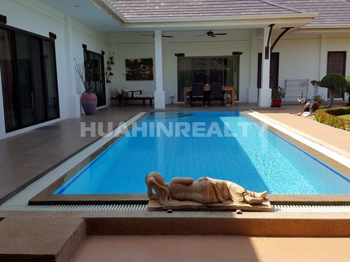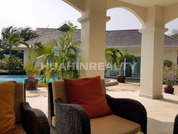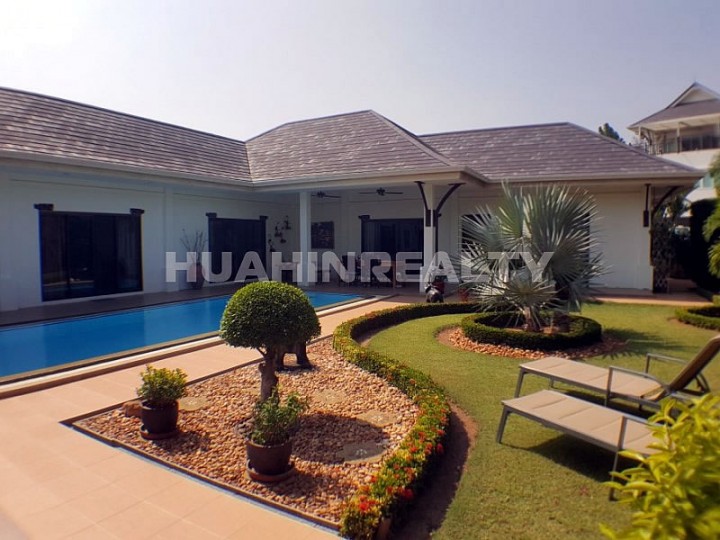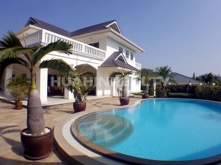 Большая комфортабельная вилла класса люкс с 5 спальными и 5 ванными комнатами в аренду в популярном поселке к югу от Хуа Хина. Полностью оборудованный дом с собственным бассейном и большой придомовой территорией. В доме есть вся необходимая бытовая техника, интернет.