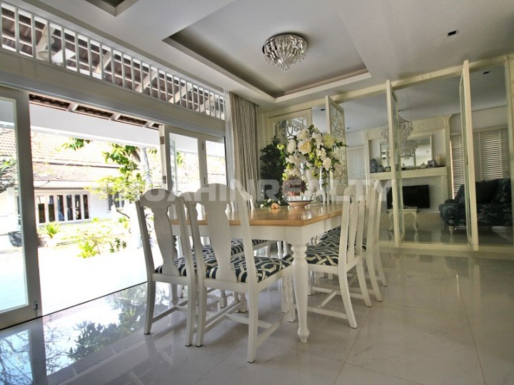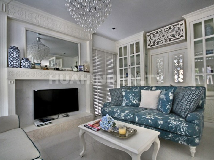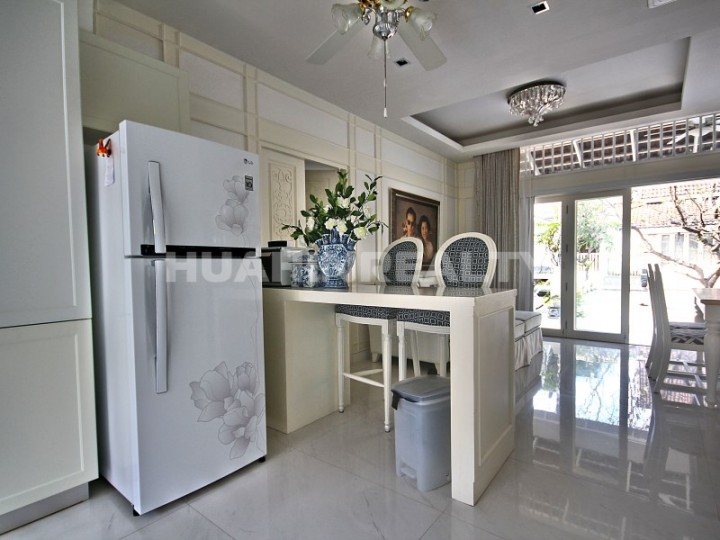 Красивый и уютный 4 спальный дом в аренду на побережье в центральной части Хуа Хина. Дизайнерский интерьер, ванные комнаты в каждой спальне, 2 гостиные (на 1 и 2 этажах), терраса с мягкой мебелью, вся необходимая бытовая техника и много друге. Дом находится всего в 20 метрах от пляжа и коммунального бассейна.